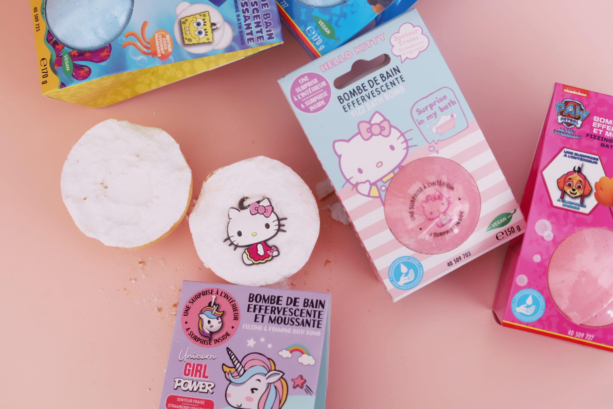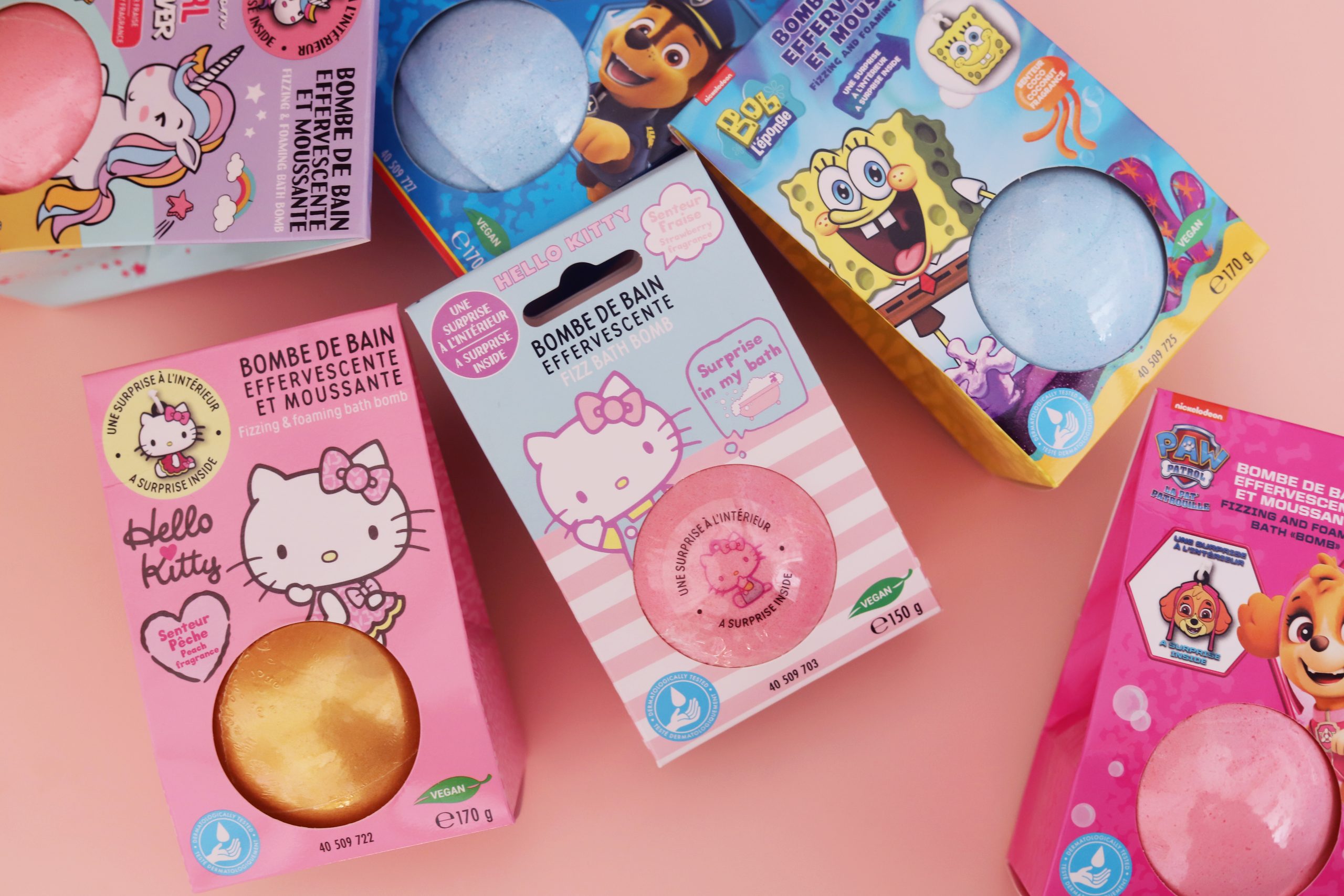 Turn bath time into a real sensory experience with our Take Care effervescent bubbles. In an instant, they colour and scent the water while releasing comforting bubbles. Designed under the SpongeBob, PawPaw, Hello Kitty and Unicorn licences, our bath balls bring a touch of magic to every bath, for young and old alike.