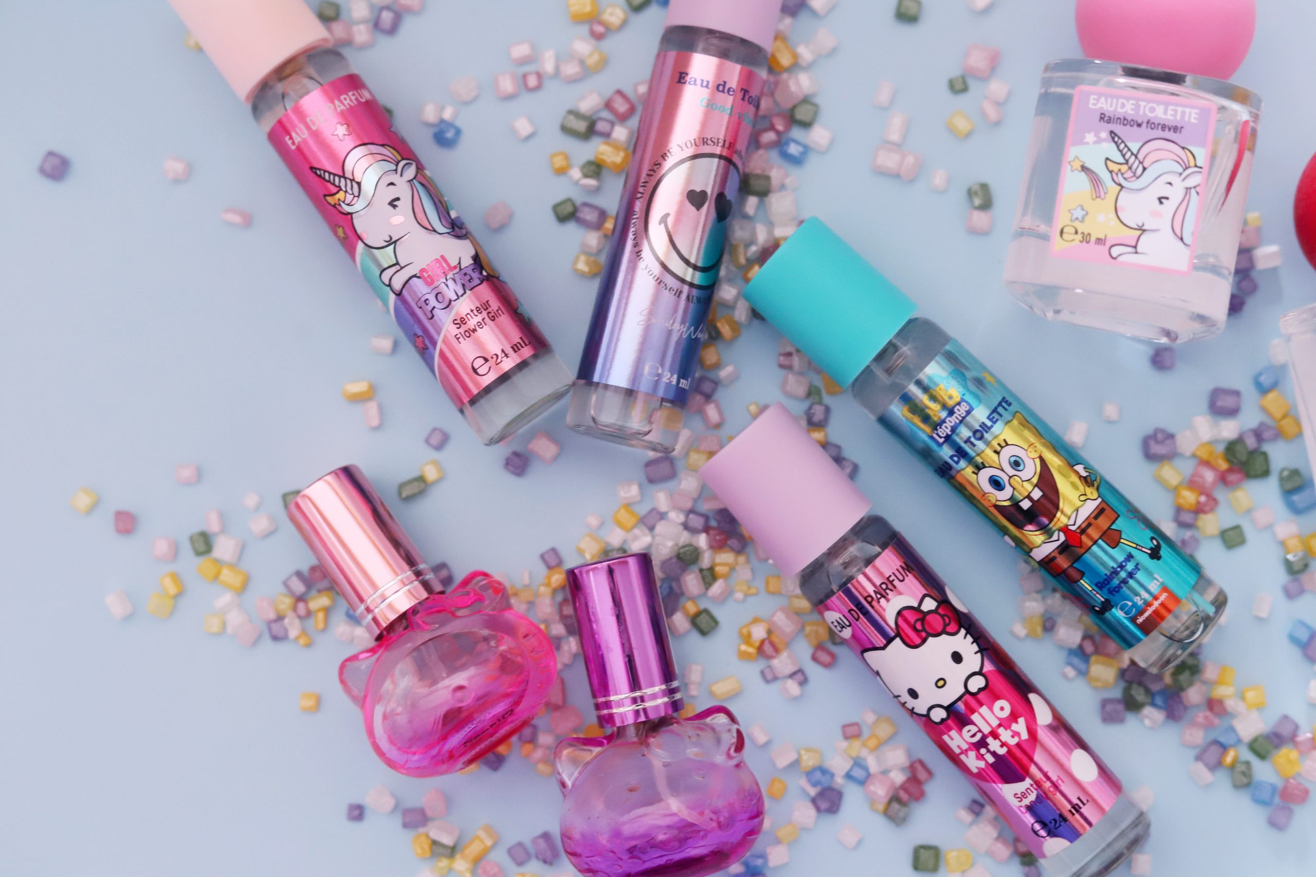 At Take Care, we have a range of perfumes and fragrance mists designed to meet all your needs. Our eau de toilette in handbag or travel size (24 ml) is perfect for a touch of freshness to take anywhere. For those who prefer a more generous bottle, discover our Hello Kitty-licensed perfumes in 30 ml or 50 ml sizes, for an everyday fragrance that combines elegance and softness. And for a light, refreshing mist, our 75 ml fragrance mists, available under the Kuromi, Hello Kitty and Unicorn licences, are ideal for scenting your day with style and fun.